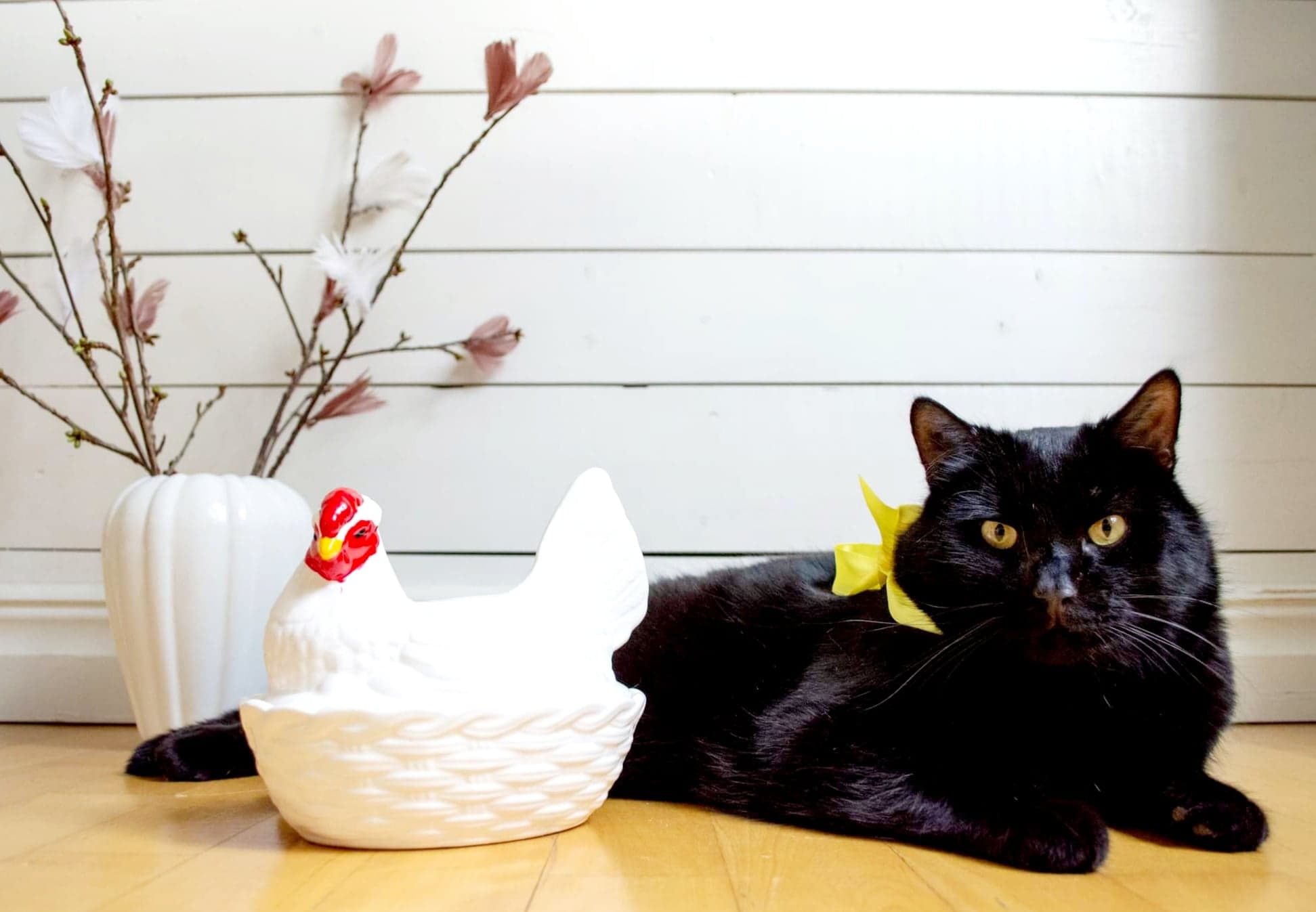 Påsken är min favorithögtid! Ägg, kyckling, och fjädervippor i mängder – allt som utgör livets absoluta höjdpunkter! (Matte kan ha sina töntiga tulpaner i fred) Glad påsk i efterskott – på er! ![]()
