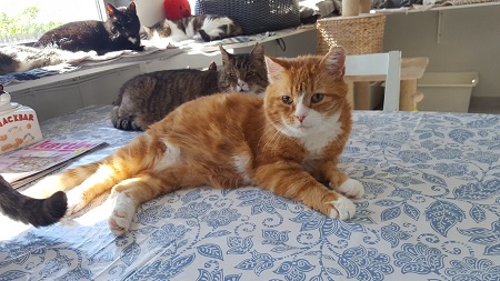 Där vi som är kvar på Katthemmet bor – håller vi modet uppe och busar på så gott det går! 😸