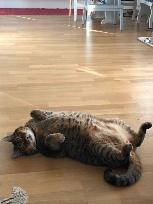 Jag solar magen, smälter maten och väntar på att du – en pensionär som bor lantligt och vill älska bara mig – kommer och adopterar mig! ❤️ Kram från Timmie