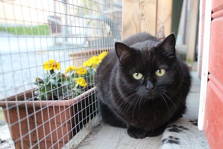Hon hölls sig mycket till sin Pappa Roffe (som nu sorgligt nog gått bort). Nu har hon blivit modigare och rör sig mera öppet. När hon är inne på eftermiddagarna så vill hon gärna bjudas på något gott och få en liten kelstund.